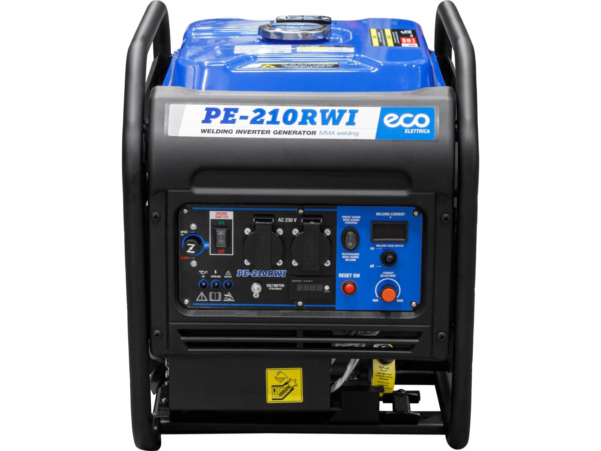 Генератор сварочный бензиновый ECO PE-210RWI (EC1710-4) – сварочная электростанция ECO PE-210RWI предназначена для использования в качестве автономного источника ручной дуговой сварки или подключения электрооборудования. Бензиновая станция с функцией сварки представляет собой комбинированную электростанцию для сварки и энергоснабжения. Современный сварочный модуль позволяет выбрать силу тока в диапазоне от 20А до 210А. Электростанция оснащена двумя цифровыми дисплями с отображением: напряжения, частоты тока, счётчиком мото-часов и силы сварочного тока. Внимание! При подборе электростанции необходимо учитывать пусковые токи устройства-потребителя электроэнергии. Двигатель поставляется без масла! Рекомендуемое моторное масло – 10W-40.
