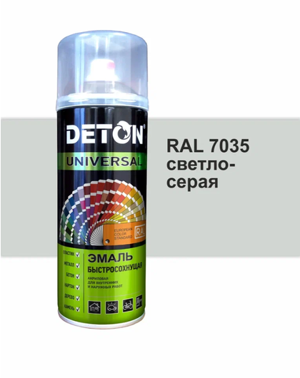 Универсальная быстросохнущая акриловая эмаль применяется для покраски изделий из металла, дерева, картона, пластика, бетона и камня. Цвета отколерованы в соответствии с европейским стандартом RAL. Время высыхания “на отлип” – 5 минут, время полного высыхания – 2 часа (при 20°С). Хорошая укрывистость и превосходная адгезия к окрашиваемой поверхности.