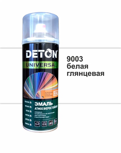 Алкидная эмаль DETON UNIVERSAL применяется для: металла, древесины, камня и тд. Цвета соответствуют европейскому стандарту RAL. Требует предварительной грунтовки поверхности. Атмосферостойкость краски защищает слой от атмосферных воздействий.
