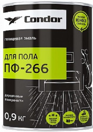 Эмаль алкидная CONDOR ПФ-266 желто-коричневая 0,9 кг используют для покраски новых и ранее окрашенных полов из древесины, ДВП, ДСП, а также других деревянных поверхностей (в том числе порогов, плинтусов, лестниц и т.д.) в жилых, бытовых, административных и производственных помещениях с нормальными эксплуатационными требованиями. Окраска бетонных полов возможна только при предварительном грунтовании ГФ-021.