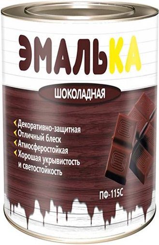 Эмаль алкидная ЭМАЛЬКА ПФ-115 шоколадный 0,9 л служит для отделочных наружних и внутренних работ. Не предназначена для поверхностей, подготовленых с применением гипсосодержащих штукатурок и шпатлевок, сильно впитывающих оснований и окраски полов.
