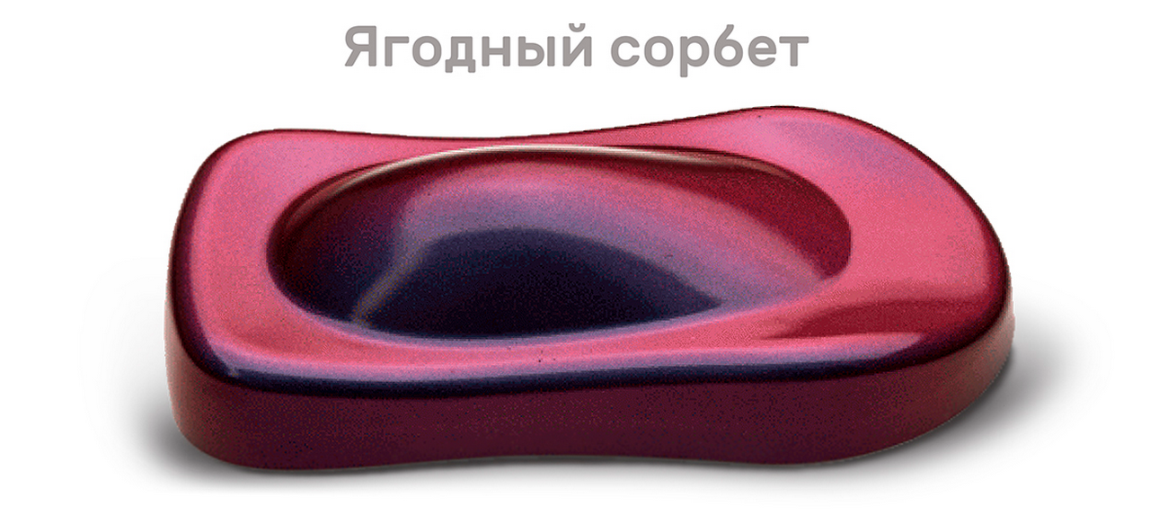 Эмаль образует декоративное покрытие с уникальным визуальным эффектом. Поверхность меняет цвет в зависимости от угла падения света. Эффект проявляется наиболее интенсивно на плавных изгибах и при нанесении на темное основание.