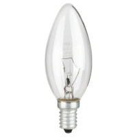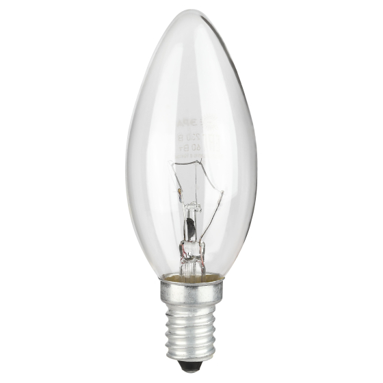Лампа накаливания вольфрамовая для бытового и аналогичного общего освещения. Лампа с колбой в виде свечи используется для декоративного оформления светильника, придания ему законченного и совершенного вида. Она красиво смотрится, создавая эффект настоящей зажженной свечи, что привносит в интерьер комнаты более уютный, успокаивающий и “теплый” вид. Прозрачная колба лампы создана специально для эффектов абсолютно чистого, искрящегося света.