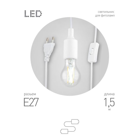 Новый светильник ЭРА FITO-Holder E27 с проводом длиной 1,5 м и выключателем идеально подойдет для любых фитоламп ЭРА с цоколем Е27. Для светильника пользователь может самостоятельно подобрать любую фитолампу ЭРА с цоколем Е27, чтобы быстро и грамотно организовать подсветку растений. ЭРА FITO-Holder E27 удобен тем, что не требует дополнительных тросов для подвеса. Длина подвеса – 1,5 метра. Удобный кнопочный выключатель расположен на шнуре. Силиконовый чехол защищает патрон от попадания внутрь влаги и пыли. Благодаря минималистичному дизайну и белому цвету, ЭРА FITO-Holder E27 удачно впишется в любой интерьер. Подвесные светильники на тросах – одно из самых популярных решений в современных интерьерах. С новым подвесом от ЭРА можно применять не только фитолампы, но и любые другие источники света.