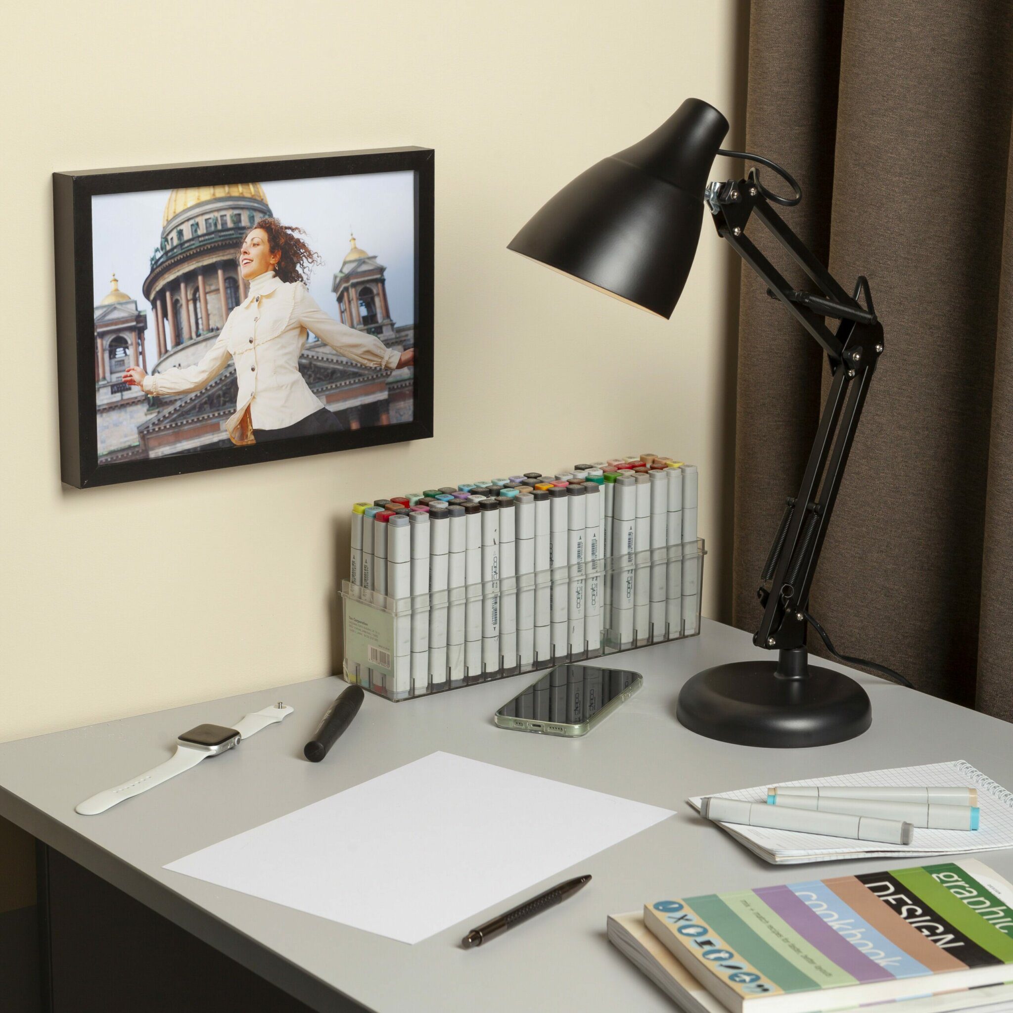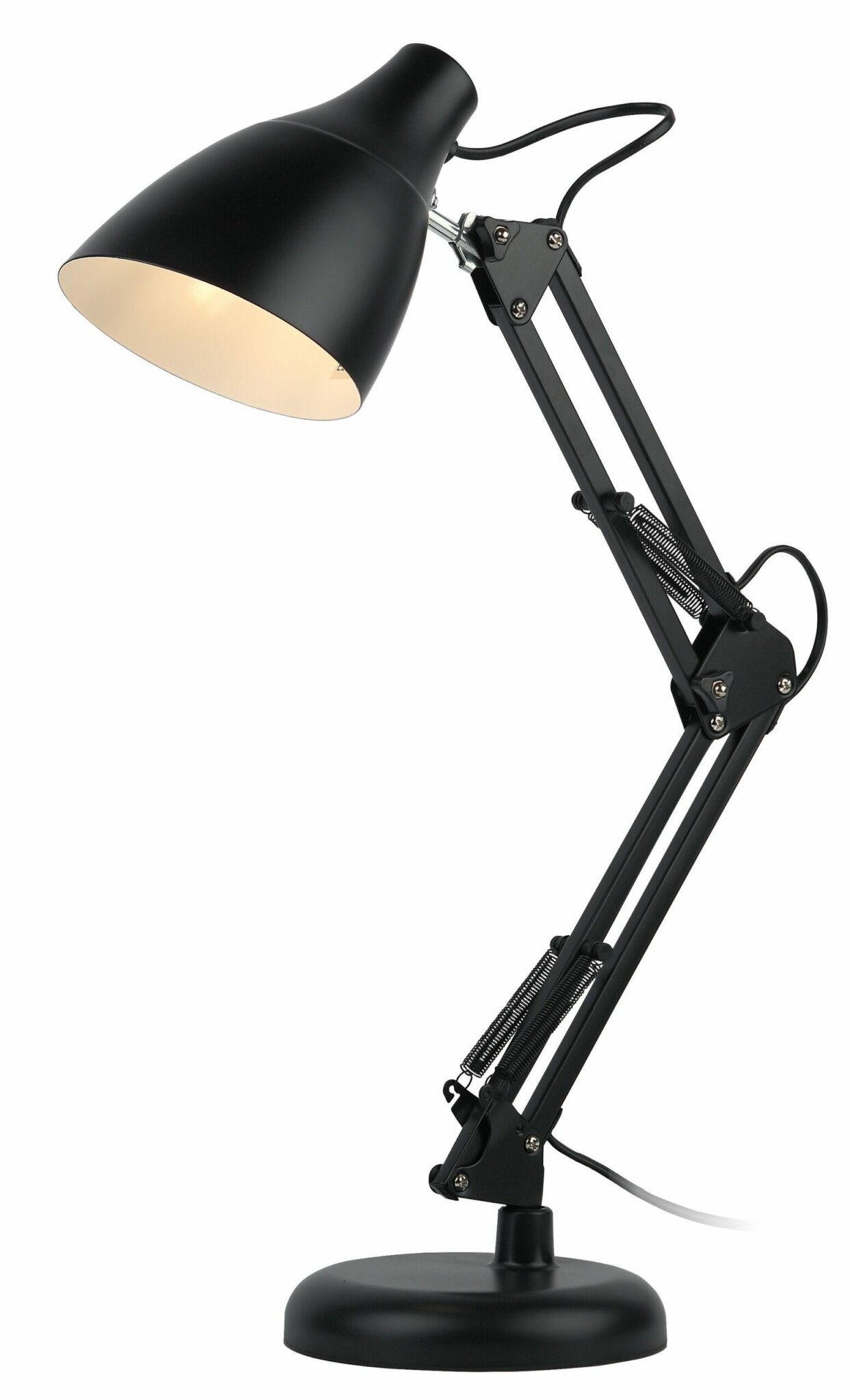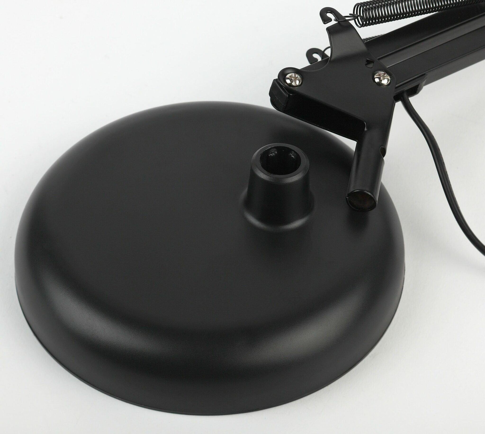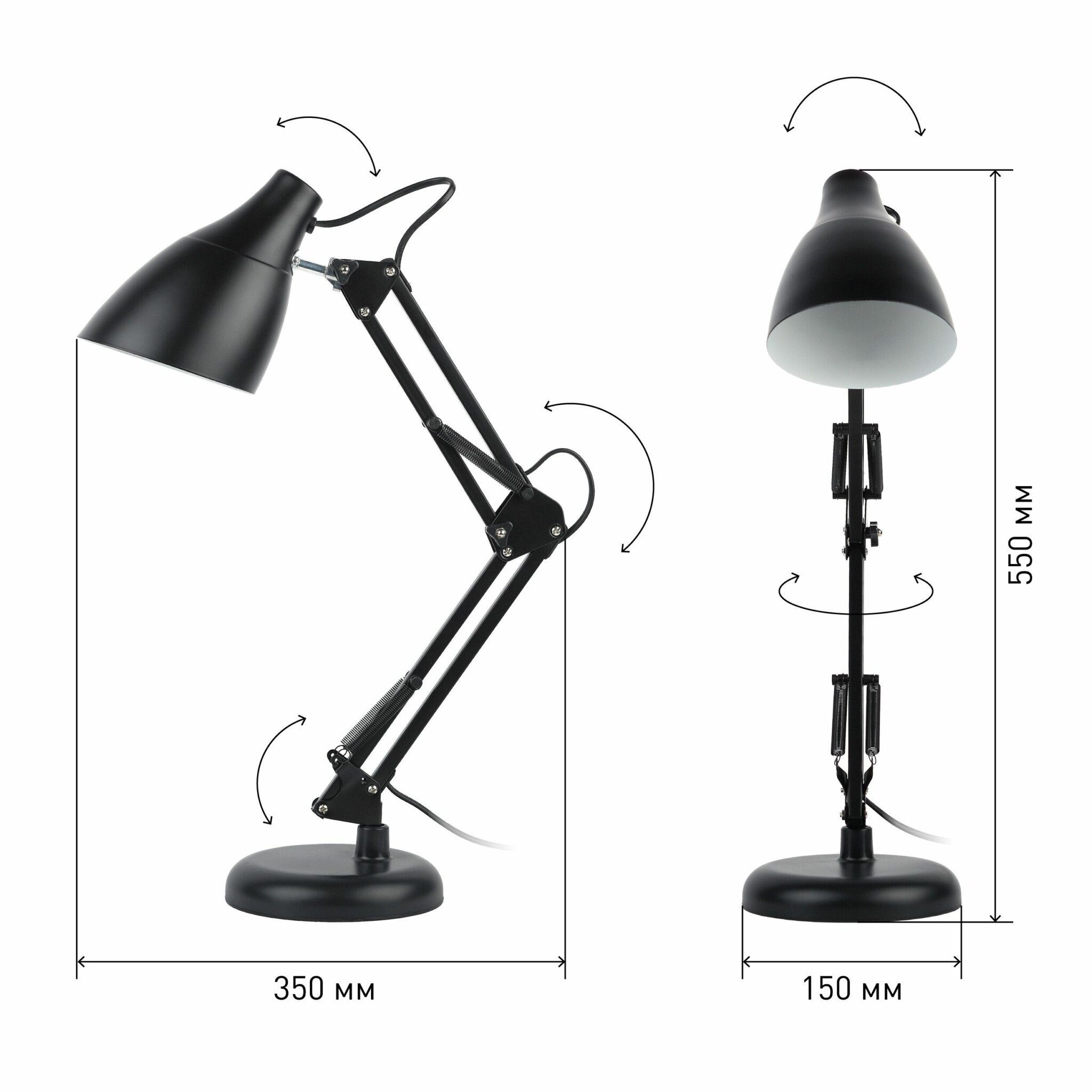 Лампа настольная ЭРА N-123-Е27-40W-BK черная (N-123-Е27-40W-BK чер) трендового дизайна с классической конструкцией может использоваться с разными источниками света – лампой накаливания, компактной люминесцентной лампой (КЛЛ) или светодиодной (LED) лампой. Выключатель на проводе. Устойчивое основание. Высота плафона регулируется двухсекционной сгибающейся стойкой, направление света – поворотом и наклоном плафона в любом направлении.