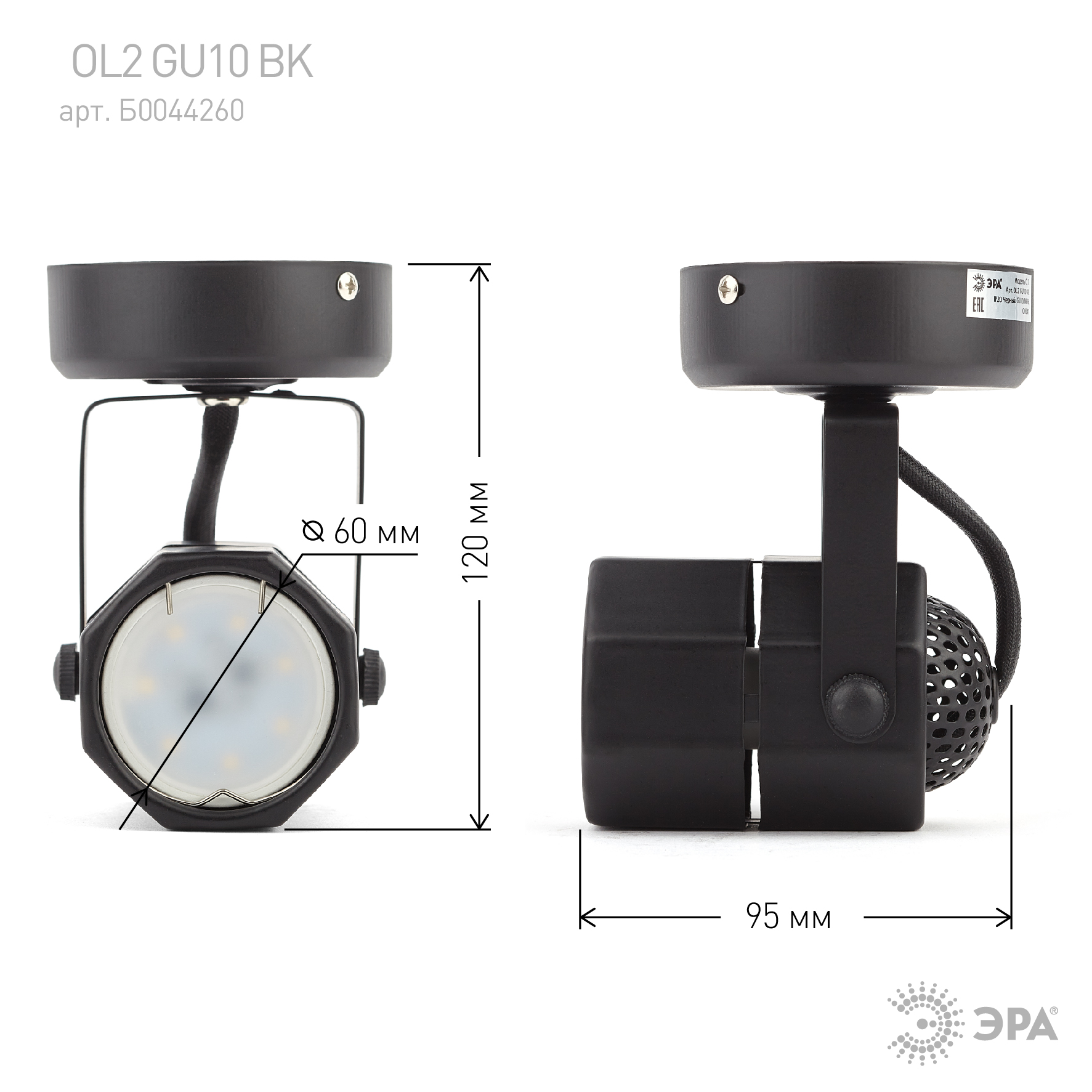 Точечный светильник накладной ЭРА OL2 GU10 BK черный подчеркивает структуру материалов стен; создает интересный световой рисунок на стенах; можно использовать как по отдельности, так создавать целые системы; нейтральный свет оптимален как для дома, так и для общественных пространств.