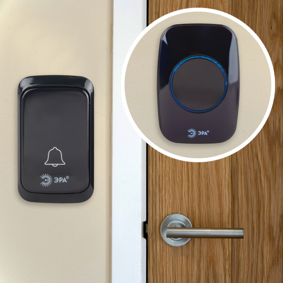 Главная Электрика Безопасность Звонки дверные ЭРА Звонок дверной C88 беспроводной черный 38 мелодий