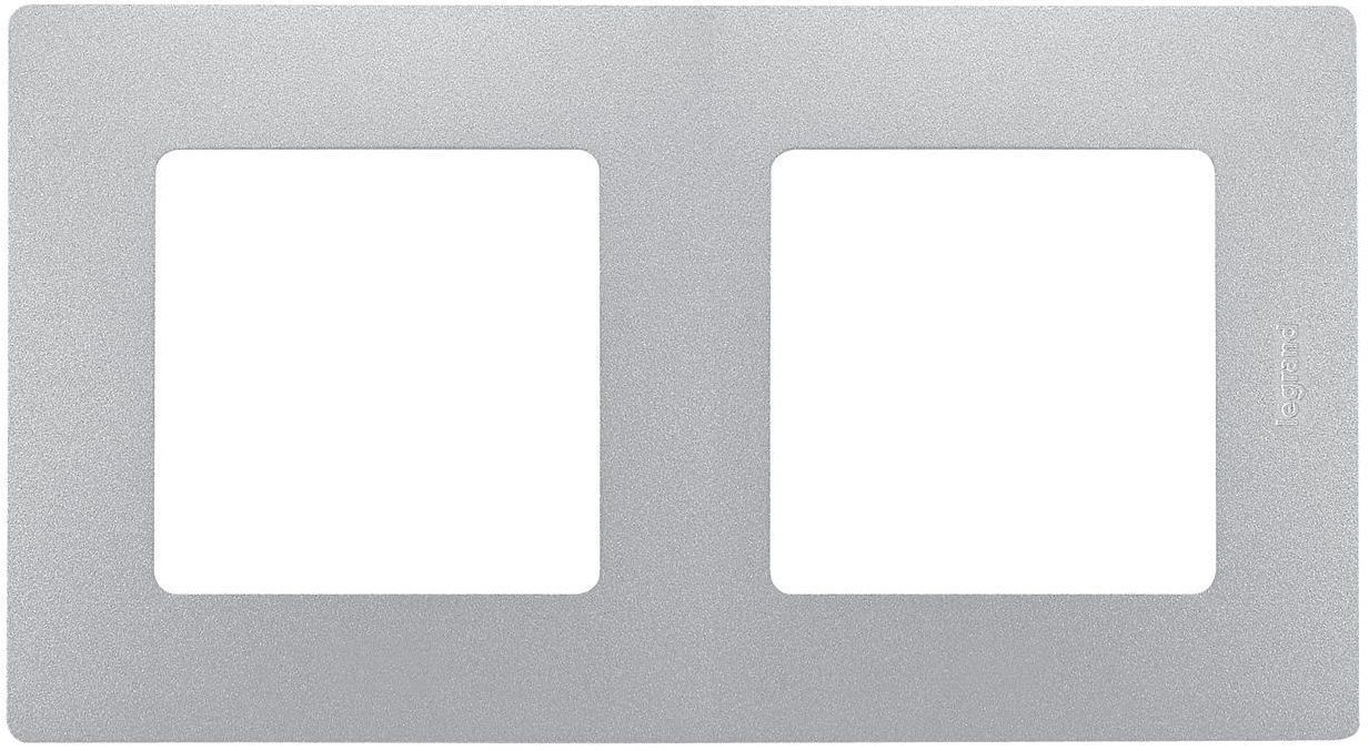 Рамка двухместная LEGRAND Etika алюминий (672552) предназначена для совместного монтажа с розетками и выключателями соответствующей серии.