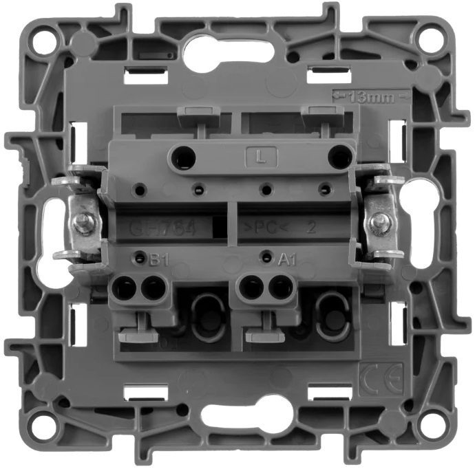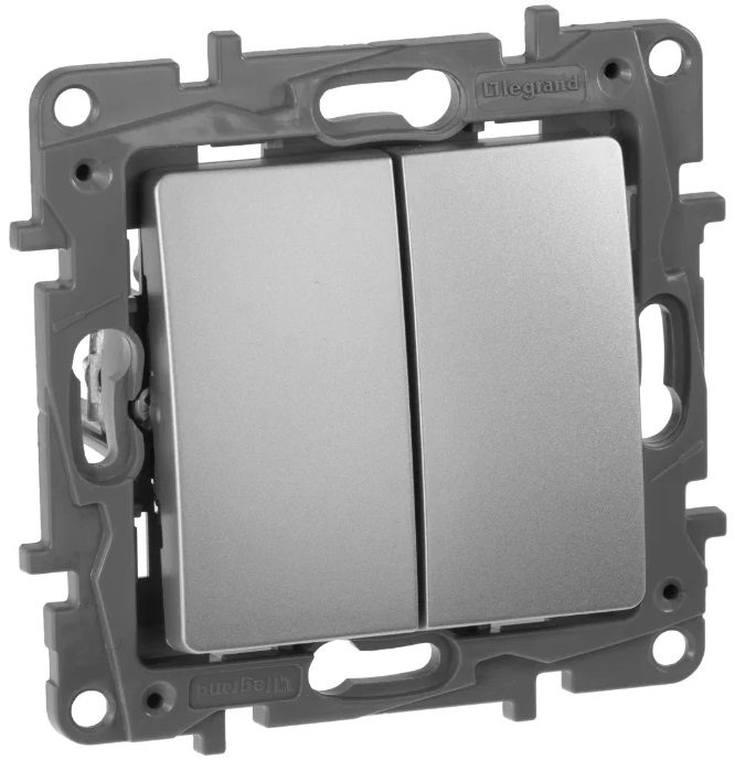 Выключатель двухклавишный скрытый LEGRAND Etika алюминий (6 2402) используется в стандартных электросетях переменного тока с частотой 50 Гц.
