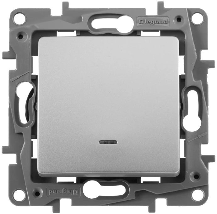 Выключатель одноклавишный скрытый c подсветкой LEGRAND Etika алюминий (6 2403) используется в стандартных электросетях переменного тока с частотой 50 Гц.