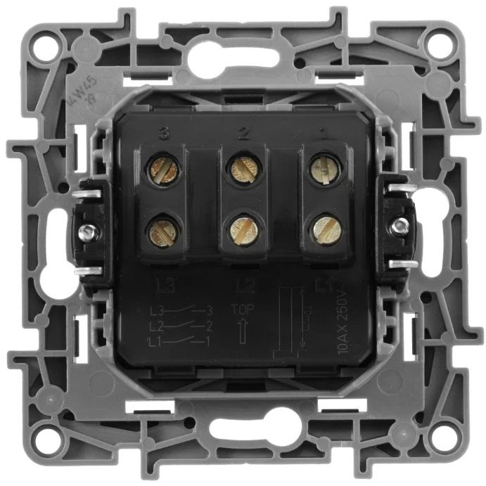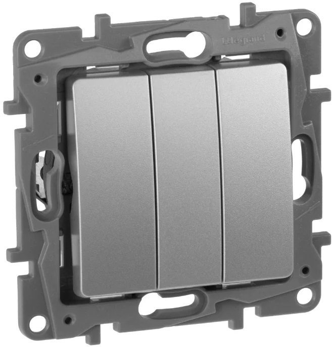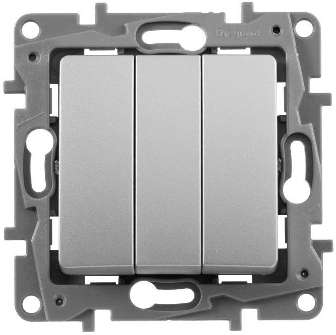 Выключатель трехклавишный скрытый LEGRAND Etika алюминий (6 2413) используется в стандартных электросетях переменного тока с частотой 50 Гц.
