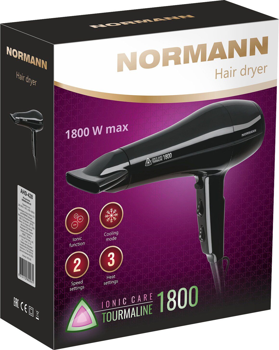 Фен NORMANN AHD-423 мощностью 1800 Вт с ионизацией. Раздельная регулировка нагрева и скорости потока воздуха. Функция холодного обдува для фиксации укладки. Для удобства хранения прибора предусмотрена петелька для подвешивания. Съемный фильтр-сетка на входе. Насадка-концентратор в комплекте.