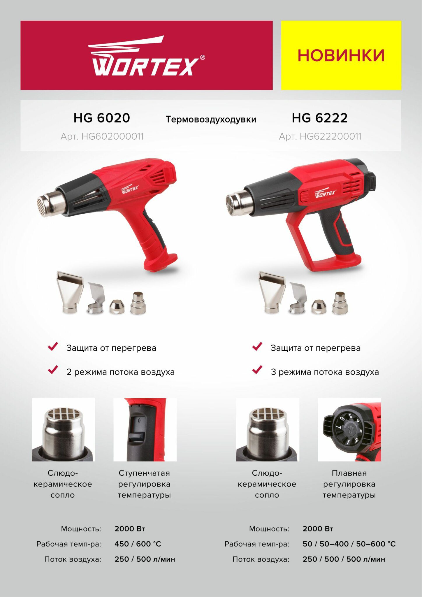 Фен строительный (термовоздуходувка) WORTEX HG 6222 (HG622200011) данная термовоздуходувка выполнена из ударопрочного пластика, имеет три режима работы и оснащена защитой от перегрева. Возможно стационарное использование. Поставляется с комплектом насадок (4 шт).