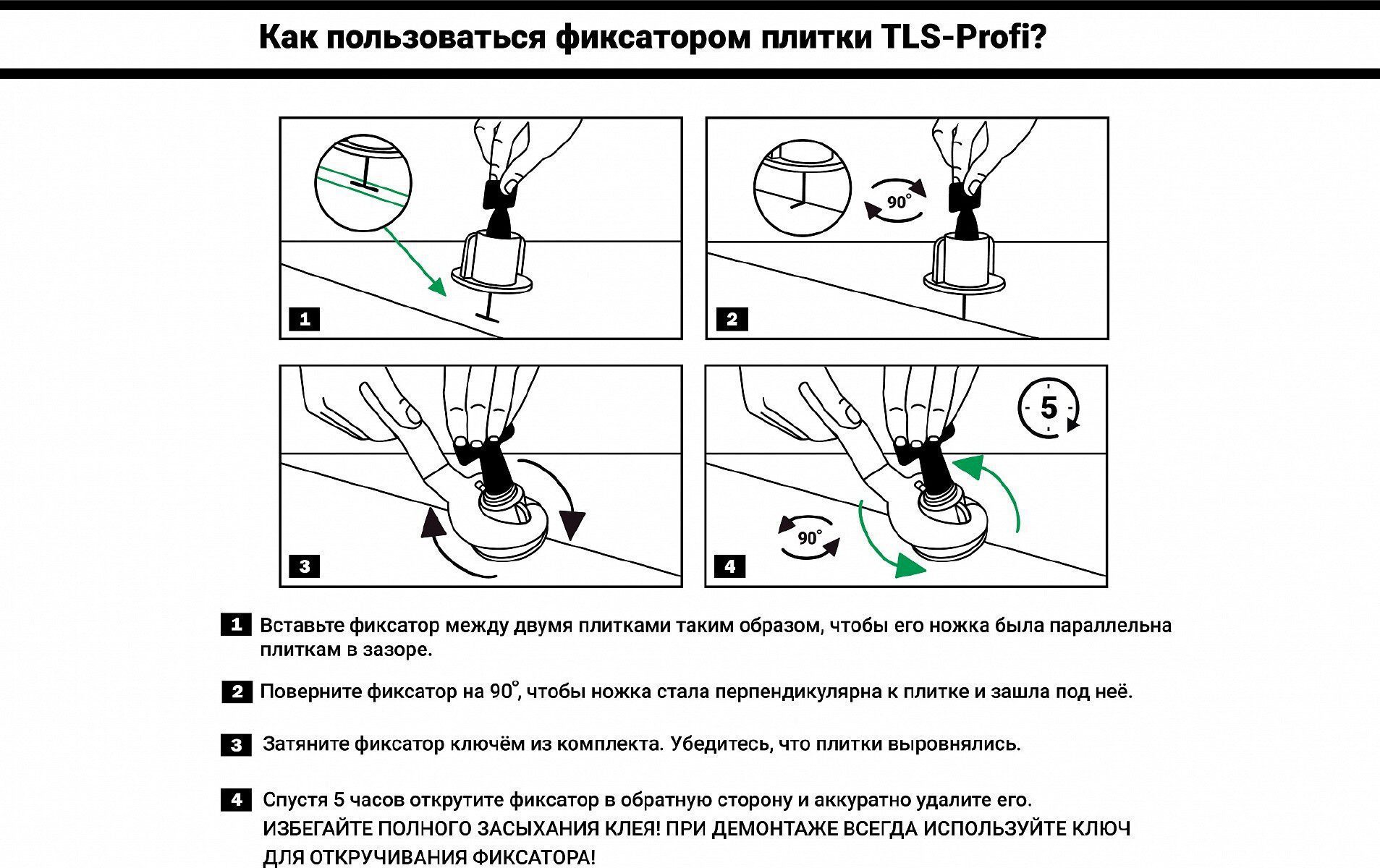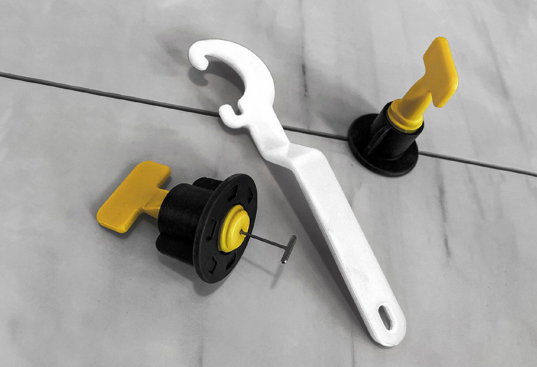 3. Затяните фиксатор ключом из комплекта. Убедитесь, что плитки выровнялись.