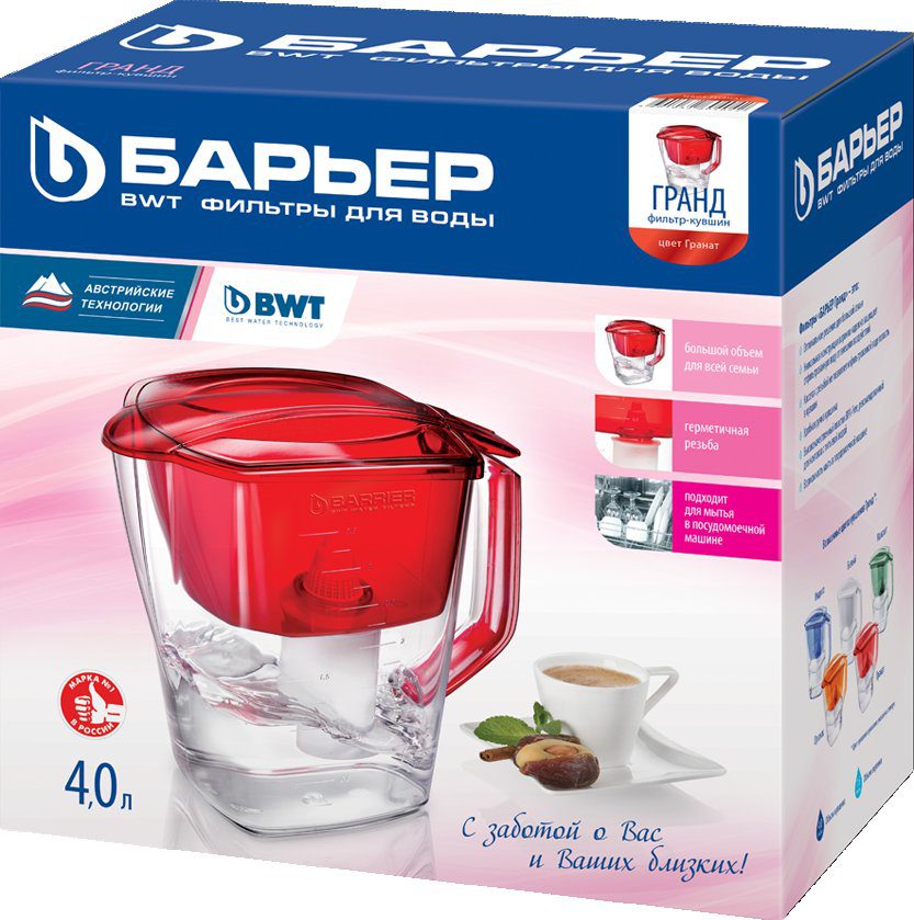 Фильтр-кувшин БАРЬЕР Гранд гранат – модель, проверенная временем. Конструкция воронки защищает от попадания пыли в отфильрованную воду. Воронка открывается при наклоне кувшина. Кувшин изготовлен из безопасных материалов, рекомендованных для контакта с питьевой водой. Надежное крепление картриджа к воронке кувшина, что исключает попадание неочищенной воды из воронки в отфильтрованную воду.В комплекте идет картридж Стандарт. Картридж Стандарт эффективен при необходимости дополнительной очистки от имеющихся примесей как органического, так и неорганического происхождения.