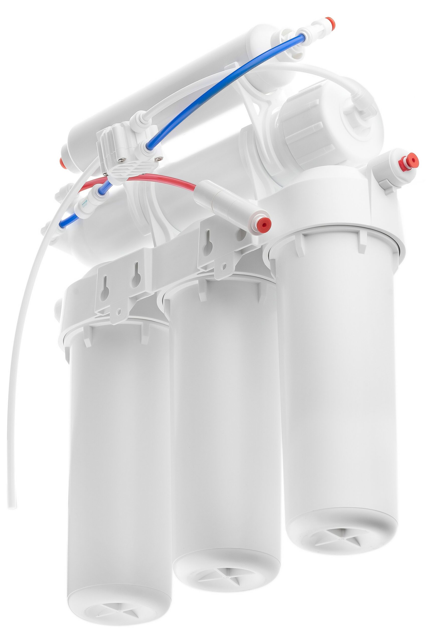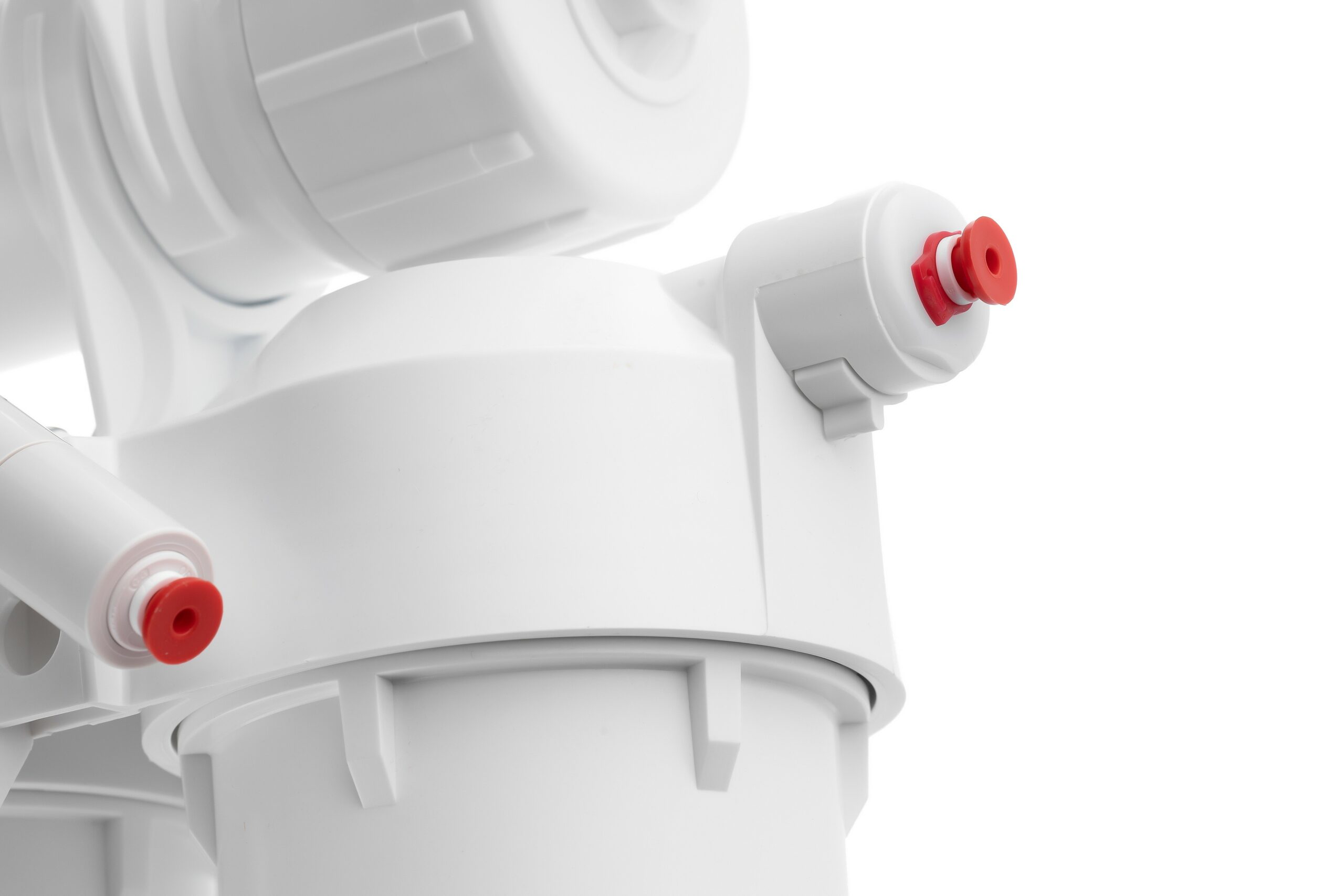 Система обратного осмоса ГЕЙЗЕР Аллегро пластиковый бак (20036) – технология обратного осмоса, использованная в фильтре Гейзер Аллегро, заключается в фильтровании воды через полупроницаемую мембрану. Размеры пор мембраны настолько малы, что пропускают только молекулы воды. Размер молекул большинства примесей, а также бактерий и вирусов значительно больше молекул воды, поэтому они не проходят через мембрану. Система работает при давлении в подводящей магистрали не менее 3 атм.