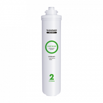 ЭКСПЕРТ Смягчение — картридж для предотвращения образования накипи (умягчения жесткой воды). Эффективно снижает карбонатную жесткость, технология by pass исключает гиперумягчение воды. Устанавливается в качестве второй ступени в фильтре «БАРЬЕР ЭКСПЕРТ Жесткость», «БАРЬЕР ЭКСПЕРТ Комплекс» и «БАРЬЕР ЭКСПЕРТ Жесткость Железо». Картридж заменяется удобно, одним движением, без специальных инструментов. Технология Smart lock обеспечивает защиту от протечек.