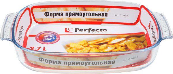 Форма для выпечки из жаропрочного стекла прямоугольная PERFECTO LINEA 2,7 л (12-270010) используется для приготовления различных блюд в микроволновой печи, духовых шкафах, а также для хранения готовой пищи в холодильнике. Данная посуда дает возможность следить за процессом приготовления, не впитывает жир, вкус, запах, безопасна для здоровья. Разрешается мыть в посудомоечной машине.