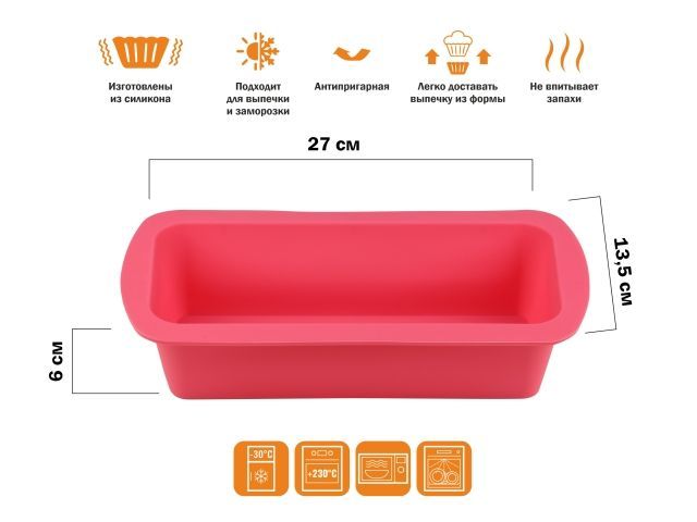 Форма для выпечки силиконовая прямоугольная 27х13,5х6 см PERFECTO LINEA Bluestone серо-голубой (20-000218) подхотит не только для выпечки, но и для заморозки. Используется во всех типах печей, кроме печей с открытым огнем и использованием функции “гриль”. Обладает противоприлипающим и антипригарным свойствами, поэтому не требуется использовать масло. Не привередлива к перепадам температуры, выдерживает от -30 °С до +230 °С. Легко моется, эластична, не горит, не тлеет, не впитывает запахи, не оставляет пятен. Абсолютно безвредена для здоровья.