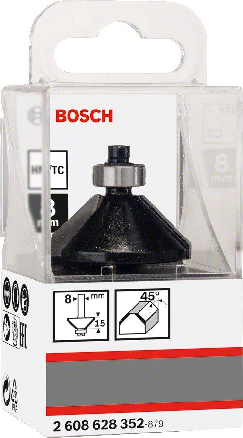 Фреза по дереву фасочная 35х14,7х56 мм BOSCH Standard for Wood (2608628352) с углом 45 градусов обеспечивает высокую эффективность резки для равномерного снятия фаски. Высококачественная режущая кромка из карбида вольфрама для долговечности и надежного фрезерования. Конструкция фрезы исключает отскоки, ограничивая толщину стружки. Цилиндрический хвостовик совместим с фрезерными машинами.
