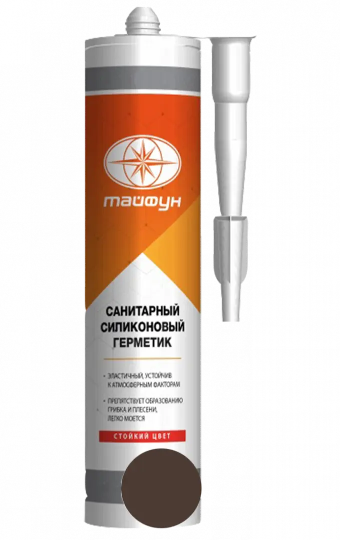 Герметик силиконовый ТАЙФУН Санитарный 124 тёмный венге 280 мл рекомендуется использовать для заполнения установочных стыков между поверхностями стен, полов и элементами оборудования помещений – вокруг душевых кабин, поддонов, соединений вокруг мебели и сантехнической арматуры, умывальников, унитазов, ванн, кухонных столешниц и моек. Обладает стойкостью к мытью. Температура эксплуатации от -40 до +120 °С. Прочность сцепления с основанием 1,3 МПа. Передвижение по поверхности возможно через 3 часа.