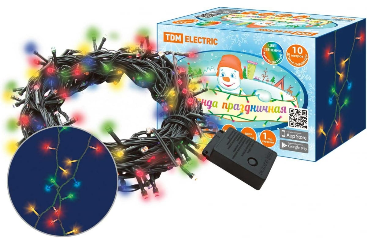 Гирлянда светодиодная СГ100MЗ10, многоцвет., зеленый шнур, 10м, 8 режимов, 250 В, TDM 30/60 предназначена для световой иллюминации и создания праздничной атмосферы.