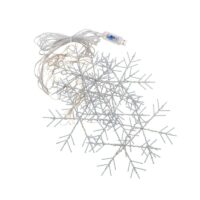 Гирлянда представляет собой горизонтальный шнур-шину, к которому крепятся вертикальные длинные нити, украшенные фигурами снежинок.