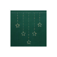 Гирлянда представляет собой горизонтальный шнур-шину, к которому крепятся вертикальные длинные нити, украшенные фигурами звезд.