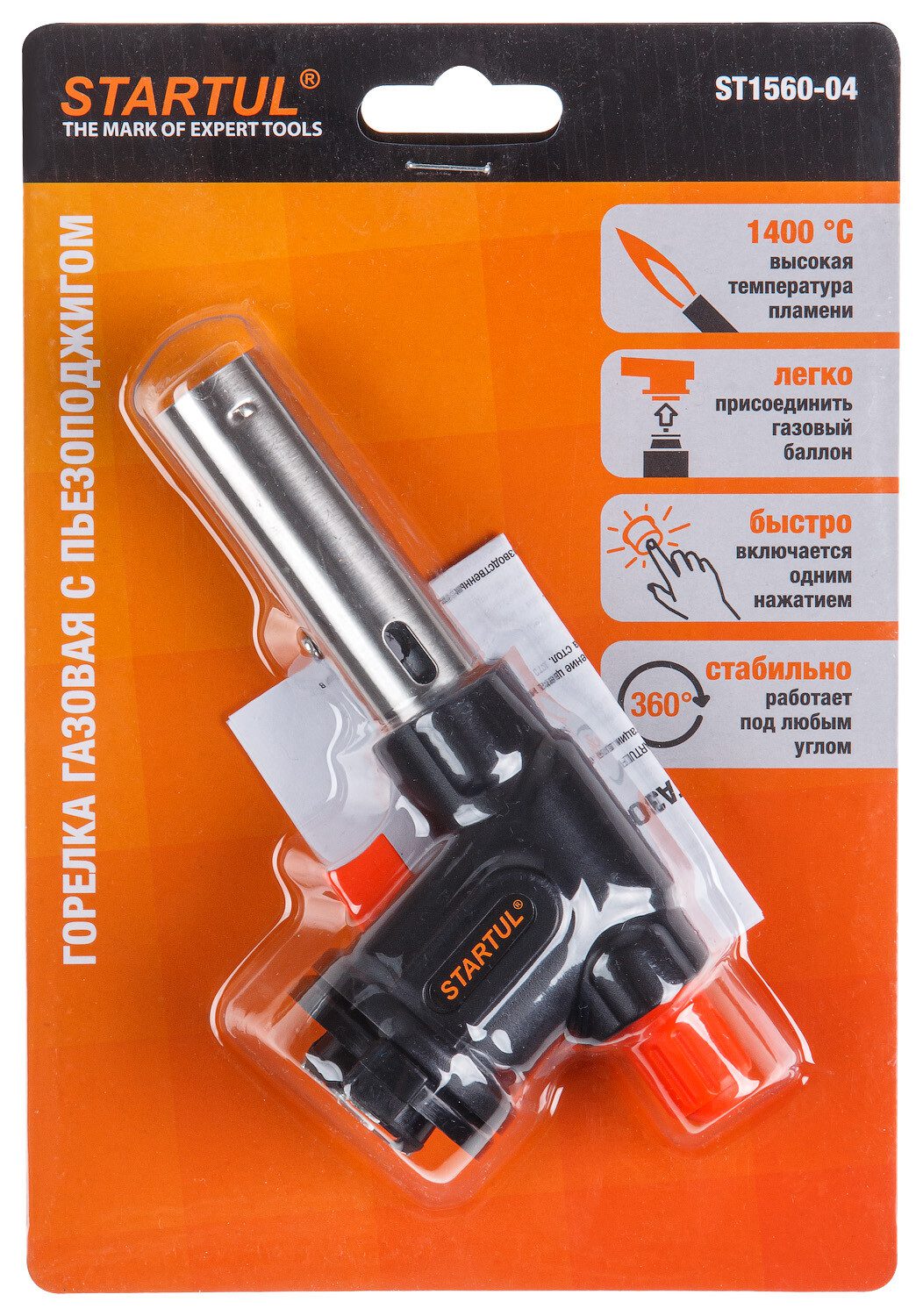 Горелка-насадка газовая STARTUL с пьезоподжигом (ST1560-04) позволяет использовать ее одной рукой. Время прогрева 90 секунд. Рекомендуется для работы:
