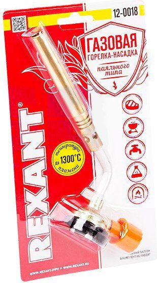 Горелка-насадка газовая паяльного типа REXANT GT-18 (12-0018) – горелка с узеньким соплом и средней мощностью. Очень хорошо подойдет для пользователей, которые нуждаются в приложении энергии для точечных дел. Рекомендовано для работы с радиоаппаратурой, нетяжелыми и драгоценными металлами, припоями; обработки плоскостей и районного обогрева в мастерских и лабораторных условиях; для плавления, сварки и резки изделий из пластиков и стекла; удаления краски; для строительных и дизайнерских работ; для разморозки замков; для копчения товаров или же карамелизации десертов; для дел в саду и огороде; для скорого и экологичного поджига дров, угля.Перед началом работы с газовой горелкой REXANT нужно ознакомиться с мерами осторожности и аннотацией по эксплуатации на упаковке горелки.Диаметр сопла 10мм. Тип газового баллона: ТВ-220 (цанговый). Топливо: смесь газа бутанизобутан. Тип поджига: ручной.