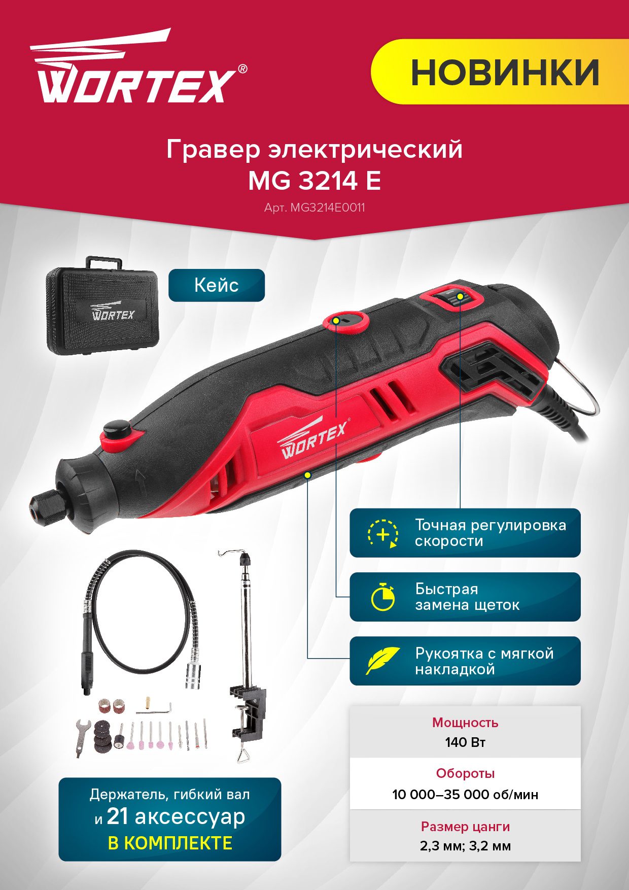 Гравер WORTEX MG 3214 E (MG3214E0011) выполняет сто и одну работу по дому и на даче. Компактный гравер снабжен функцией точной регулировки скорости. Для удобства пользователя предусмотрена быстрая замена щеток. Мягкая накладка на корпусе обеспечивает надежный захват. Гибкий вал и держатель в комплекте.