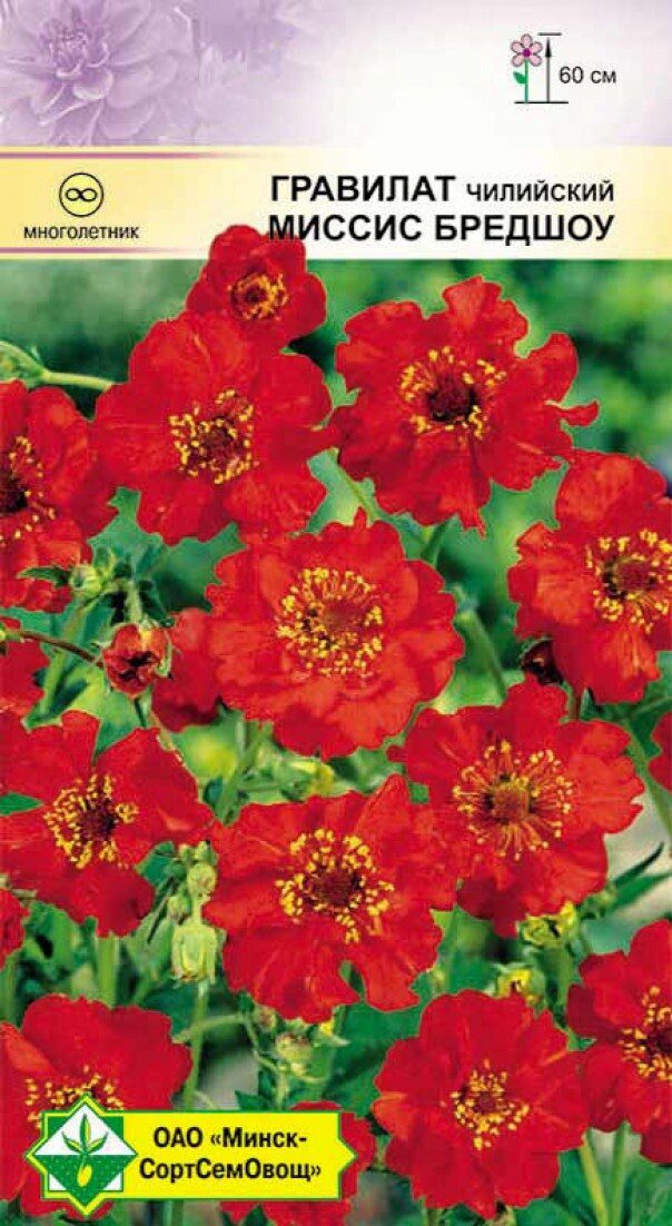 Семена гравилата чилийского Миссис Бредшоу МИНСКСОРТСЕМОВОЩ 0,15 г ‒ оригинальное многолетнее растение высотой около 60 см. Цветет обильно и продолжительно на второй год. Яркие огненно-красные полумахровые цветки великолепны как для букета, так и для клумбы. Семена высевают в мае-июне. На постоянное место рассаживают в июле-августе. Предпочитает солнечное место, но выносит и полутень. Отцветшие цветоносы необходимо выламывать. Зимует без укрытия.