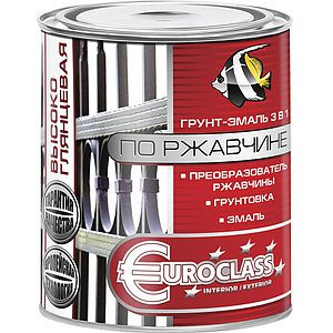 Грунт-эмаль алкидная EUROCLASS для ржавчины 1,9 кг обладает хорошими защитно-декоративными и антикоррозионными свойствами. Высококачественная грунтовка на основе алкидного лака. Грунт-эмаль предназначена для окрашивания деревянных металлических поверхностей, эксплуатируемых внутри помещений и в атмосферных условиях, без предварительного грунтования и последующего дополнительного нанесения эмали, что ускоряет процесс проведения отделочных малярных работ.