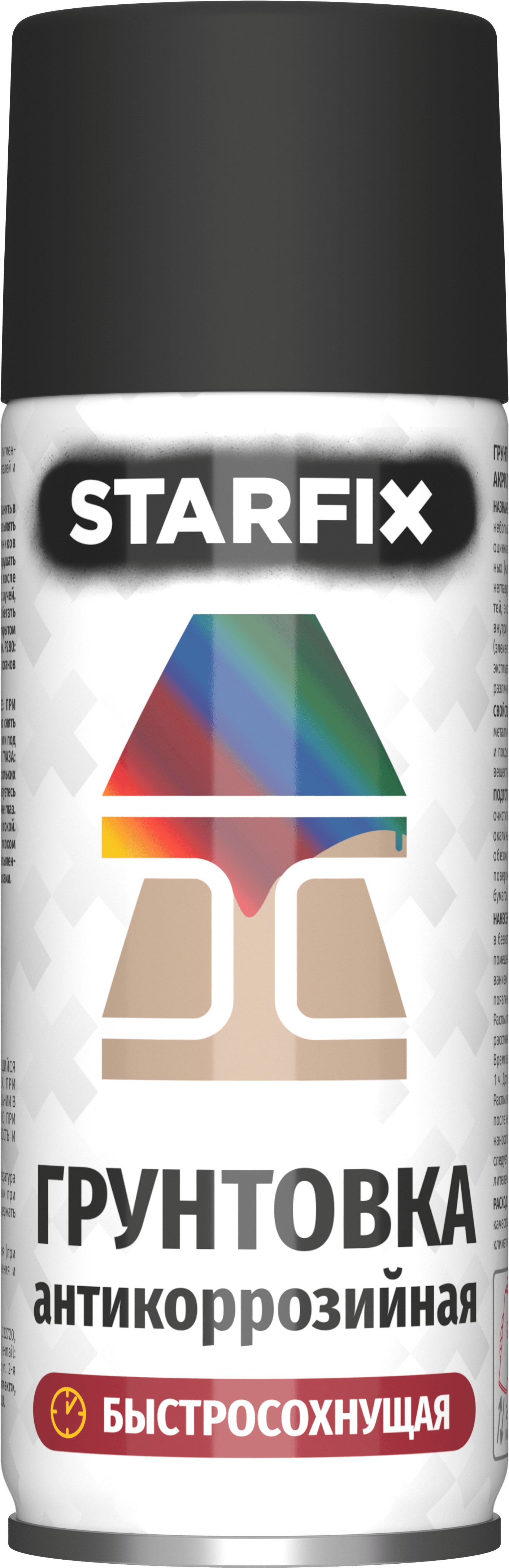 Грунтовка аэрозольная антикоррозийная черный STARFIX 520 мл (SM-38641-1) купить в сети строительных магазинов Мастак