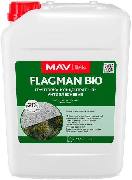 Грунтовка FLAGMAN BIO концентрат антиплесневая бесцветная 10 л применяется для профилактической обработки от биоповреждений и грунтования минеральных поверхностей (бетонных, оштукатуренных, гипсокартонных, кирпичных, асбестоцементных и др.), склонных к поражению плесенью и водорослями (влажные и затененные помещения, затененные фасады и т. п.) перед оштукатуриванием, шпатлеванием, окраской ВД-АК красками, оклейкой обоями, облицовкой плиткой и др. Предотвращает образование плесневых грибов.Глубоко проникает в верхние слои поверхности, уменьшает ее впитывающую способность.Укрепляет пылящие основания.Облегчает нанесение красок, снижает их расход.Обеспечивает прочное сцепление с основанием наносимых материалов: красок, шпатлевок, штукатурок.