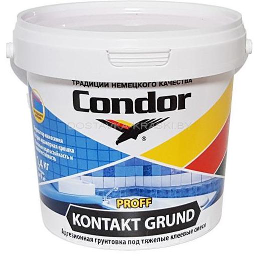 Грунтовка CONDOR Kontakt Grund 1,4 кг предназначена для обработки плотных строительных материалов (монолитные бетонные стены, железобетонные конструкции и др.) с целью создания промежуточного слоя перед нанесением тяжелых клеевых смесей, гипсовых, полимерцементных и др. штукатурок, а также структурных красок и шпатлёвок. Идеальна под укладку керамической плитки.Образует шероховатое полупрозрачное покрытие, с розовым оттенком. Высокий показатель влагостойкости препятствует пересыханию клеевых составов.