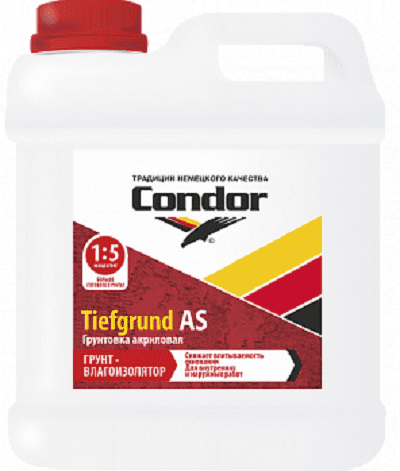 Грунтовка CONDOR Tiefgrund AS концентрат 5 кг предназначена для грунтования минеральных оснований (шпатлевки, штукатурки, гипсокартона и др.) перед стандартными малярными работами внутри и снаружи помещений. Идеально подходит для грунтования пористых и чувствительных к влаге оснований (ячеистый бетон, газосиликатные блоки, гипсовые пазогребневые блоки и др.) перед нанесением клеевых составов, облицовкой керамической плиткой, а также под нанесение выравнивающих и декоративных гипсовых штукатурок.