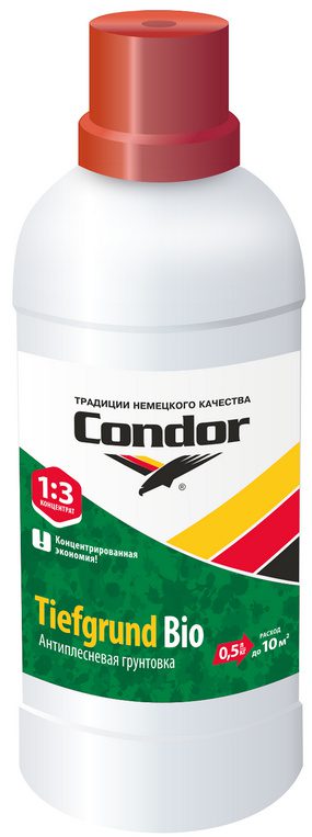 Грунтовка CONDOR Tiefgrund Bio концентрат 0,5 кг предназначен для обработки пористых минеральных оснований (шпатлевки, штукатурки, гипсокартона, кирпича, бетона и др.) перед окраской водно-дисперсионными красками, облицовкой керамической плиткой и приклеиванием обоев в помещениях, подверженных постоянному воздействию конденсата и капиллярной влаги (кухни, ванные и душевые комнаты, кладовки, подвалы и др.). Уничтожает плесень на стадии грунтования и предотвращает ее дальнейшее появление.