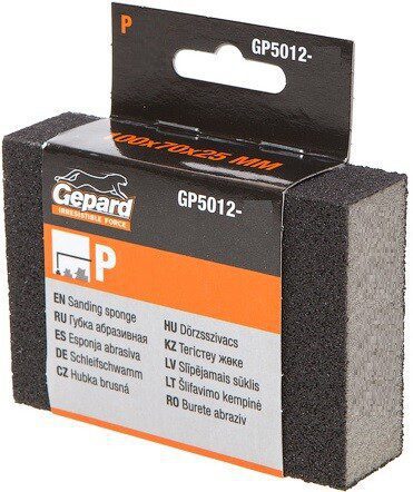 Губка абразивная 4-х сторонняя GEPARD Р180 (GP5012-180) изготовлена из высококачественных материалов и отвечает самым современным требованиям к абразивным материалам. В качестве основы используется полиуретан, благодаря которому губка имеет высокую устойчивость к деформациям, а также повторяет все изгибы обрабатываемой поверхности. Абразивный слой изготовлен из оксида алюминия и нанесен с 4-х сторон губки. Зернистость губки позволяет использовать ее для обработки металла и твердых пород древесины, для окончательного шлифования штукатурки, мягких пород древесины, для финишной подготовки окрашиваемых поверхностей. Высокая водостойкость губки позволяет использовать ее для мокрого шлифования.