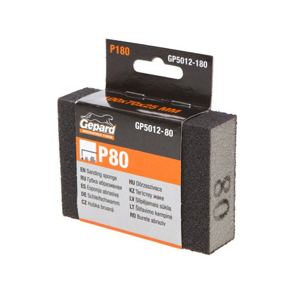 Губка абразивная 4-х сторонняя GEPARD Р80 (GP5012-80) изготовлена из высококачественных материалов и отвечает самым современным требованиям к абразивным материалам. В качестве основы используется полиуретан, благодаря которому губка имеет высокую устойчивость к деформациям, а также повторяет все изгибы обрабатываемой поверхности. Абразивный слой изготовлен из оксида алюминия и нанесен с 4-х сторон губки. Зернистость губки позволяет использовать ее для грубой обработки металла, древесины, пластика, штукатурки и прочих материалов. Высокая водостойкость губки позволяет использовать ее для мокрого шлифования.