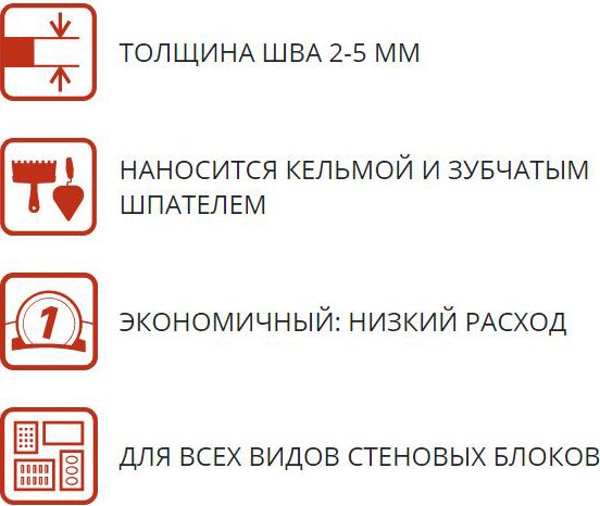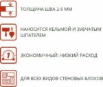 | Расход | 1,6-1,8 кг/м²х1 мм (25 кг/1м3 кладки) |