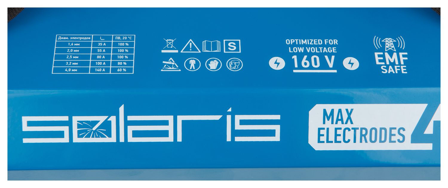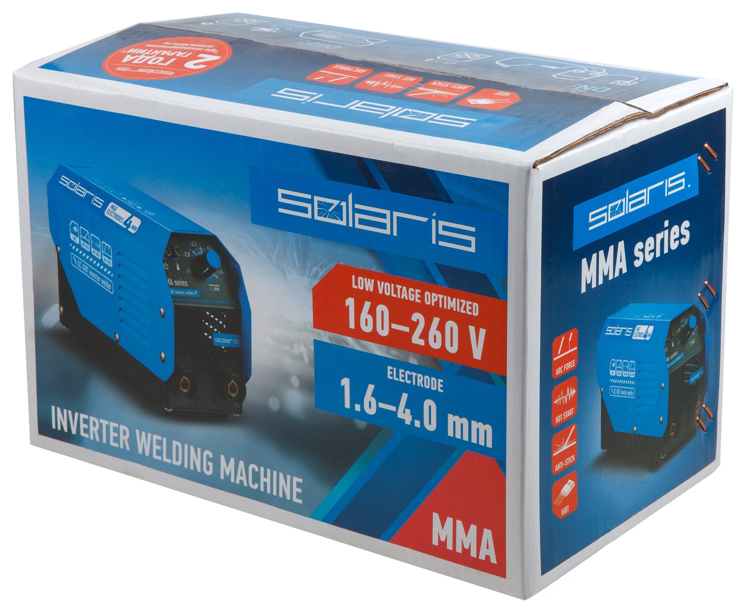 Инвертор сварочный SOLARIS MMA-200D работает на базе 4 шт. современных IGBT-транзисторов. Стабильная работа при входном напряжении от 160В. Функции ArcForce, HotStart, AntiStick. Эффективное охлаждение компонентов. Полностью электронная защита от перегрева более надежна в сравнении с электронно-механическим решением. Сетевой кабель с сечением 2.5мм2 в мягкой резиновой изоляции.