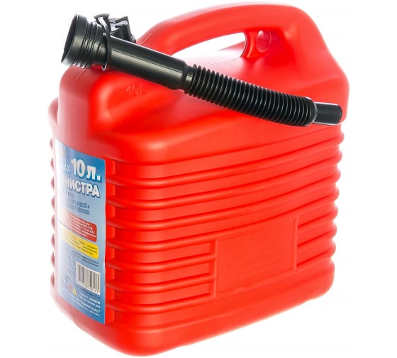 Канистра пластмассовая 10 л с заливным устройством МАМОНТ (3006-2) предназначена для хранения и транспортировки ГСМ. Разрешен залив бензина в том числе на АЗС (контакт с металлическим заправочным пистолетом разрешен). В комплекте идет канистра 10 литров с крышком и заливным устройством.