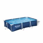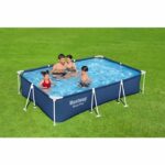 Бассейн BESTWAY Steel Pro 300x201x66 (56411) отличается высокой прочностью и устойчивостью. Чаша выполнена из высококачественного трехслойного ПВХ: два слоя плотного винила и между ними сетка из полиэстера для особой прочности. Цвет чаши бассейна снаружи синий, внутренняя поверхность имеет расцветку под мозаику. Каркас металлический, покрытый предотвращающим появление коррозии слоем пластика. Не требует бетонирования и подготовки ямы, все, что нужно, это плоская, горизонтальная площадка. Сезонный бассейн (рекомендуется разбирать на холодное время года) обладает простой конструкцией — может быть легко разобран и собран заново. Время сборки и подключения бассейна составляет около 20 минут. Удобный сливной клапан позволяет присоединить садовый шланг, что дает возможность слить воду в любое место. В комплект поставки входят фильтр-насос производительностью 1249 л/ч для очистки и циркуляции воды, картридж, шланги и хомуты, необходимые для подключения к бассейну.