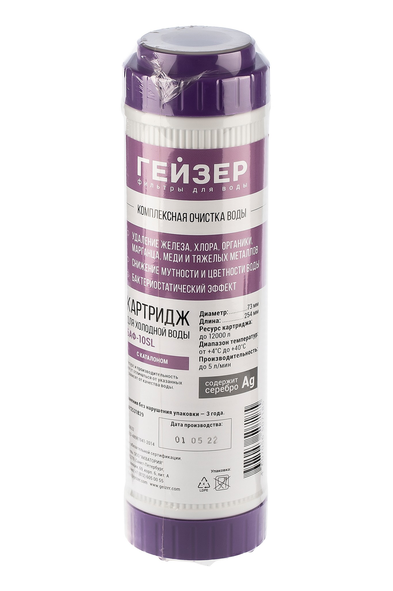 Картридж фильтрующий ГЕЙЗЕР БАФ SL10 предназначен для очистки питьевой воды и может быть использован как одноступенчатый фильтр, так и в составе тройки на 2-ой и 3 –й ступени. Эффективно удаляет: твердые частицы, хлор, хлорорганические соединения, бензол, фенол, органические соединения, нефтепродукты, пестициды, железо, медь, марганец, ртуть, ионы тяжелых металлов, мутность, цветность, неприятные привкусы и запахи, бактерии и вирусы определенного ряда и др.