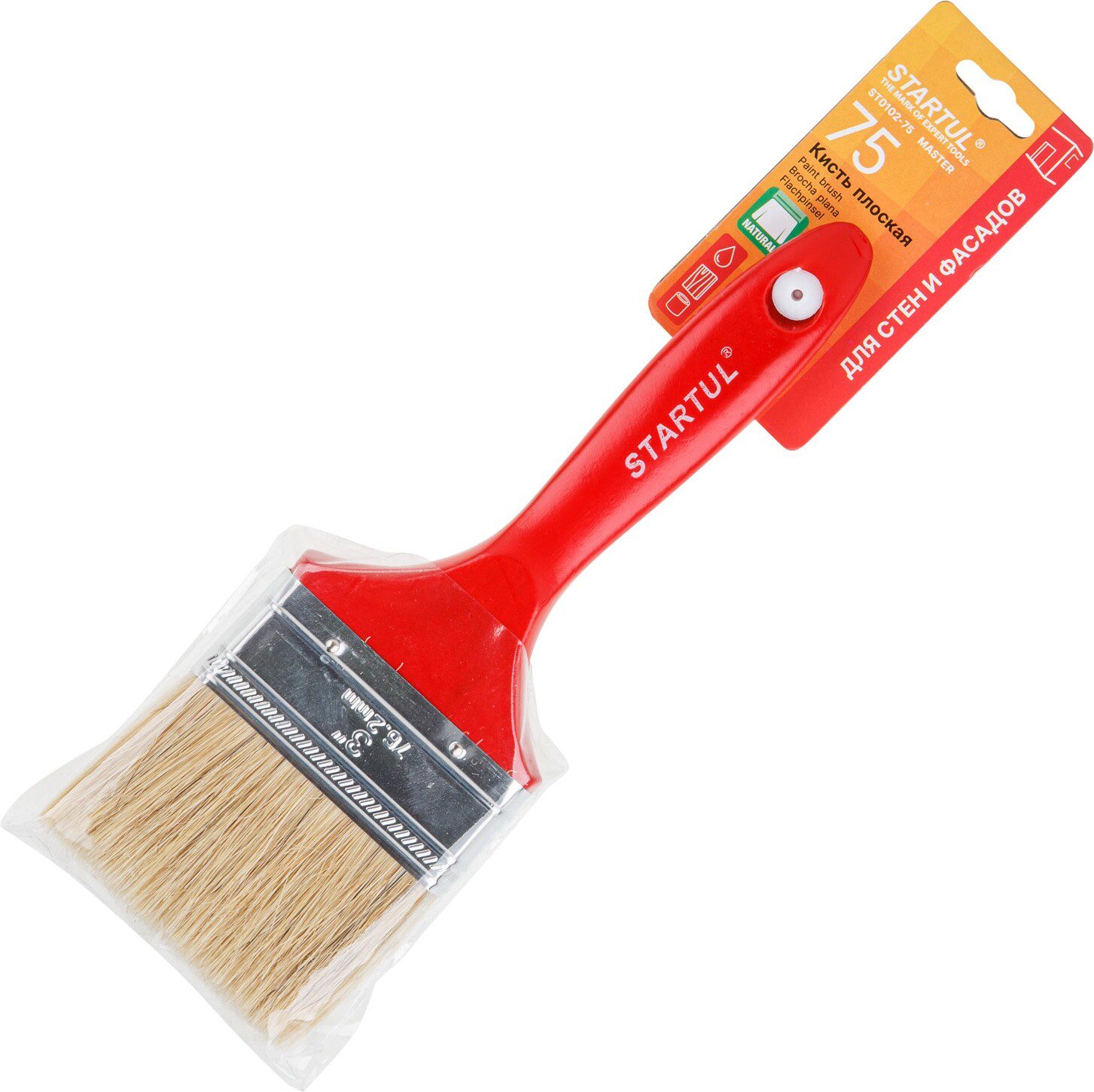 Кисть плоская STARTUL Master 75 мм (ST0102-75) является универсальной – при помощи нее можно окрашивать любые поверхности, получая качественное гладкое глянцевое покрытие.