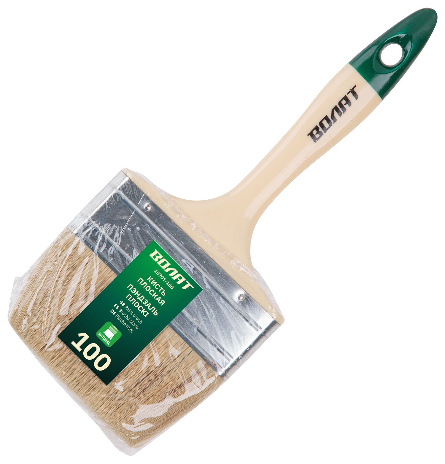 Кисть плоская ВОЛАТ 100 мм (10700-100) является универсальной – с ее помощью можно окрашивать любые поверхности, получая качественное гладкое покрытие. Щетина изготовлена из натурального волоса.