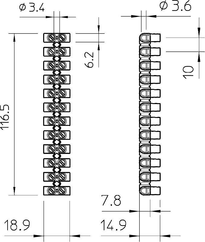 Главная Электрика Комплектующие для электрики Клеммник разрезаемый 74 CE WS, 12шт., 6мм2, 41A, 450V, в белом полипропилене