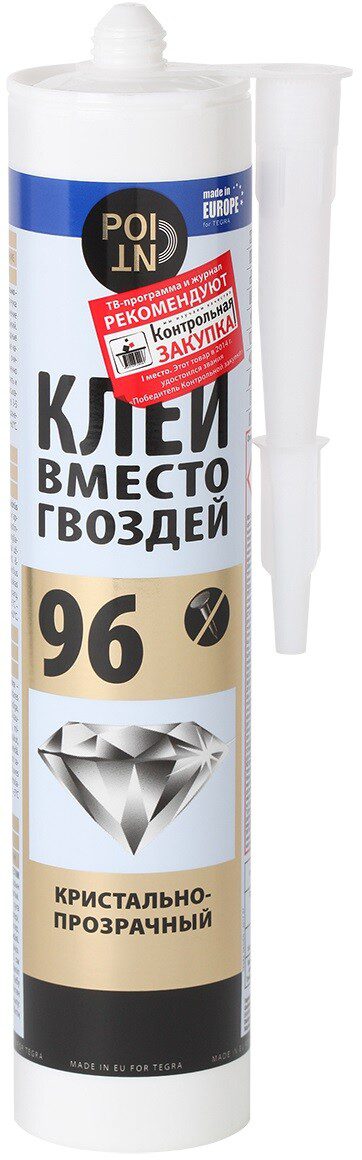 Клей монтажный POINT Клей вместо гвоздей 96 280 мл (03-1-0-096) – это многоцелевой прозрачный каучуковый монтажный клей. Рекомендуется для большинства строительных материалов для финишных и реконструкционных работ. После отверждения образует эластичный и прозрачный шов. Имеет отличную адгезию к типичным строительным основаниям. Рабочее время составляет 10-15 минут.