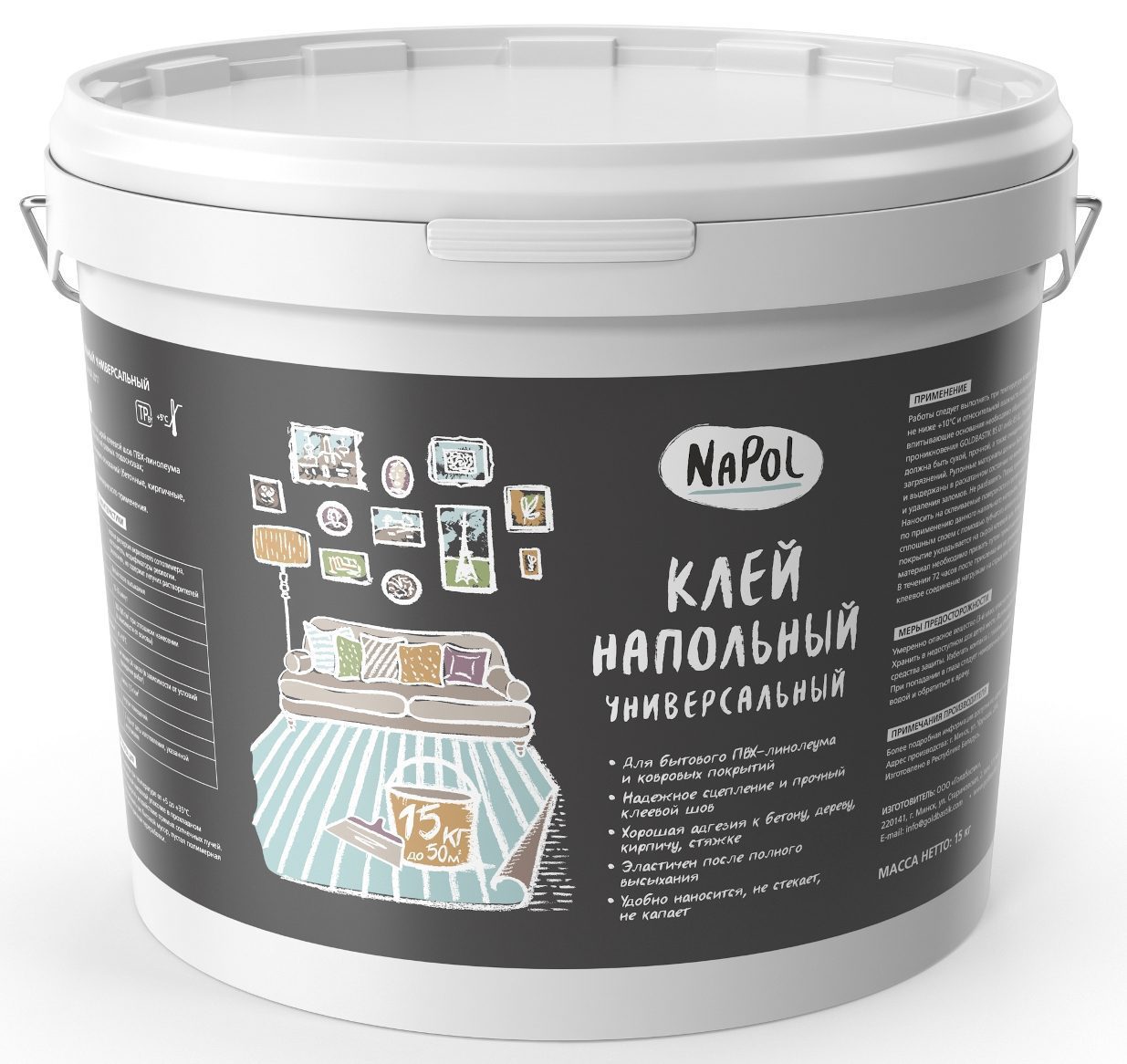 Клей напольный GOLDBASTIK NaPol Универсальный 15 кг предназначен для приклеивания на сырой клеевой шов бытового ПВХ-линолеума и ковровых покрытий на разных подосновах, для влаговпитывающих оснований (бетонные, кирпичные, деревянные и др.). Экологичен, не содержит летучих растворителей.